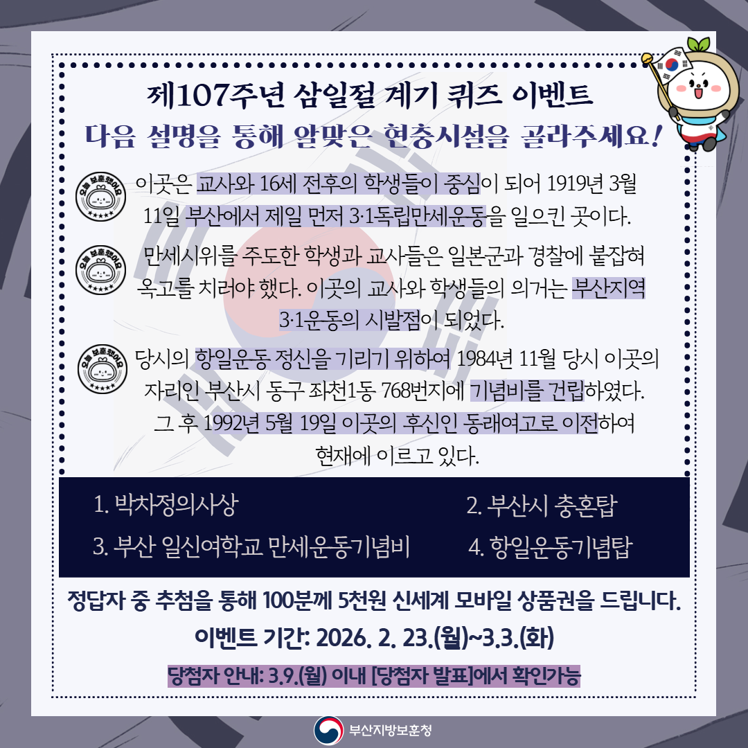 <월간보훈>제107주년 3.1절 계기 퀴즈이벤트